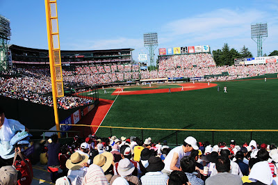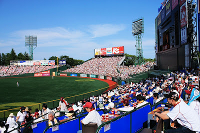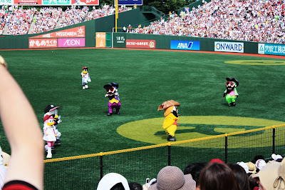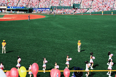 樂天球場內的播報方式很有趣,前半場用美式的方式,由男生播報,後半段則用甜美的女聲,是標準的日式。