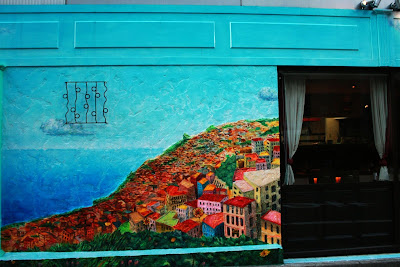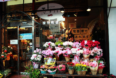 (路邊的餐廳和花店。)