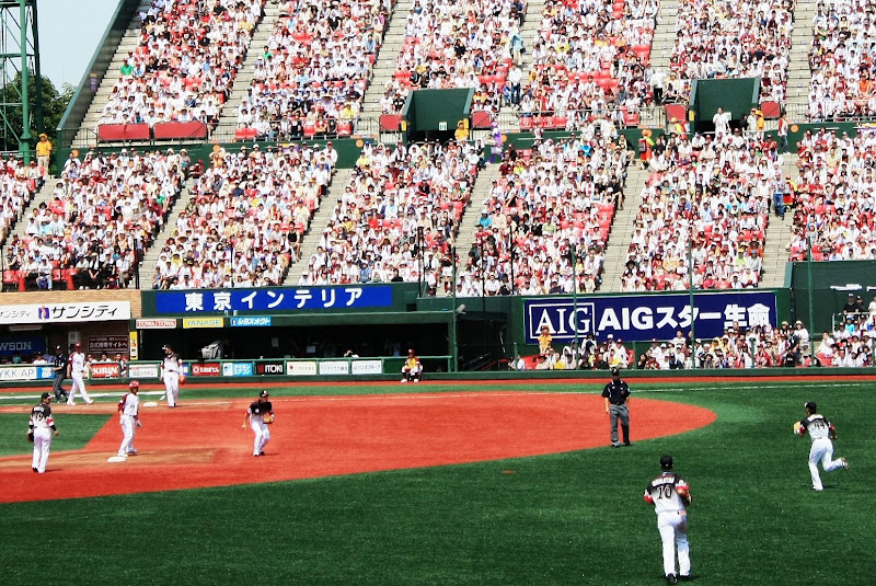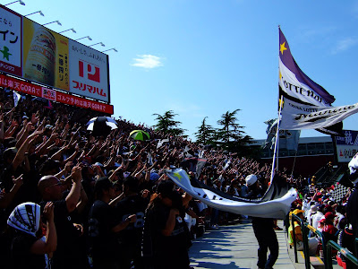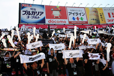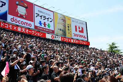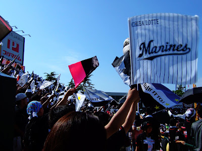 或許是應援團誠心的加油奏效,羅德隊在7局上終於突破岩隈久志的球路,連下兩城,讓右外野high到最高點,這時不管認不認識,羅德隊球迷互相擁抱、擊掌道賀,「萬歲、萬歲」聲響徹雲霄。