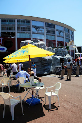 兩隊在午後一點的豔陽下展開了一場高水準的比賽,雖然是坐在外野,但顯然球場的設計很好,沒有死角,加上球場本身規模比較小,可以清楚看見場內每個角落。