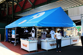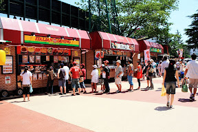 此外,還有會員限定參加的活動攤位、各式紀念品販售、贊助廠商的攤位、多樣飲食、綜合案內所前穿著日式浴衣的工作人員、噴水池前街頭藝人表演,到處都有吸引球迷目光的服務和理由,真的,這才叫經營職棒。