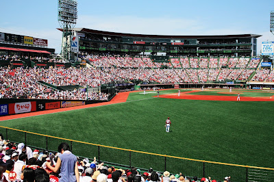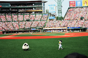 遙控器不小心轉到樂天比賽時,通常會看一下。原本總是看著透過衛星傳回家中螢幕顏色不甚鮮艷的影像以及畫面和播報有落差的彆腳轉播,這時即將真實現在眼前,還沒真正走進球場我的情緒不自覺就high了起來。