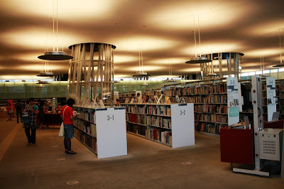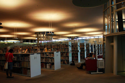 這是目前在台灣也相當知名建築師伊東豐雄設計的公共建築,做為仙台市民的圖書館, Mediatheque在法文中就是「收納媒體的架子」的意思。