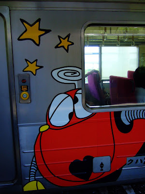 他的作品我雖然不熟悉,但能坐上這班列車覺得運氣不錯。除了車身,車內也到處都以趣味的漫畫圖案妝點,甚至還有漫畫家簽名原稿,如果是他的粉絲搭上這台列車一定會很高興。