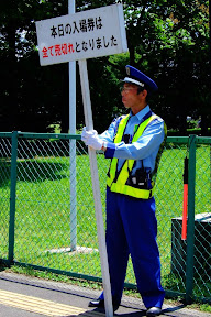 站外一個警衛舉著「今天門票全部售完」的牌子,提醒還沒買票的球迷,如果真想進場看球,就不用再白跑一趟了。這也是球團方面貼心舉動。還好boomer44 san已經先幫我們買好門票了,要不然看到這個牌子我也要打道回府了。