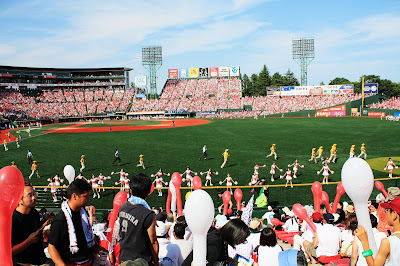 到日本看野球除了場內比賽精采,坐在外野還可以欣賞應援團的表演,有些人或許嫌太吵,但我認為這是體驗日本職棒最直接的方式。