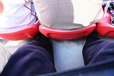 外野指定席位置雖然不大,但腳可以伸到前一排椅子下的空隙,並不會不舒服。