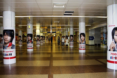 (左圖:地下通道內堀北真希為docomo代言之廣告。 右圖:仙台地下鐵的單程票,起程票價200円,比東京兩家地下鐵貴上許多。)
