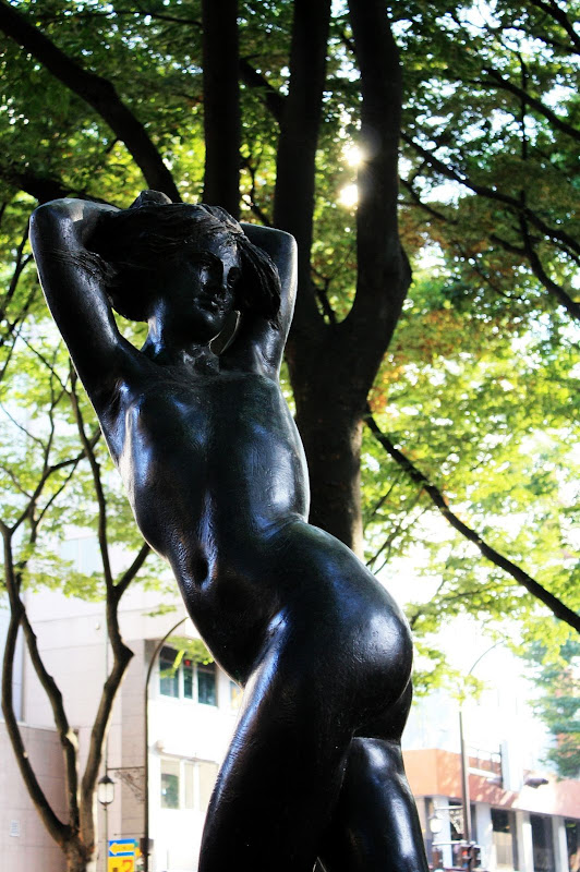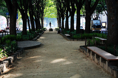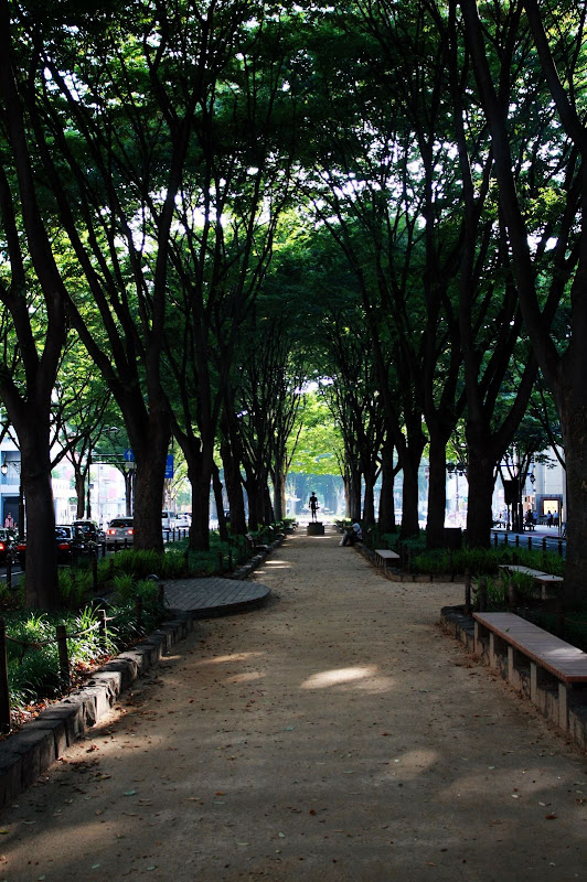 寬敞的分隔島兩旁有高大的櫸樹,陽光透著此時新綠的樹蔭灑入步道,加上幾尊藝術雕像,讓定禪寺通成為市內最漂亮的城市風景。