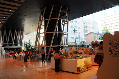 再往上是圖書室,有豐富館藏,只見仙台市民拿著書在採光良好的窗邊靜靜閱讀,再往上還有展覽空間,