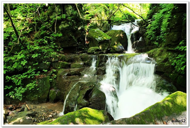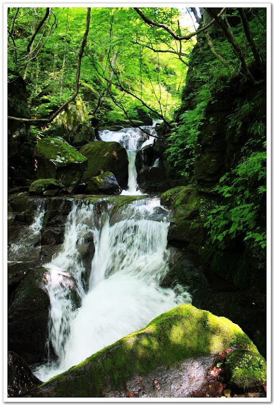 4.雲井の滝:前段的大景,一座漂亮的兩段式瀑布,落差約30公尺。遠藤先生原本想帶我靠近瀑布底下感受那股清涼感及回音,濕滑的石頭讓我滑了一跤,還好,safe,人和相機一切無傷,只有弄髒褲管。遠藤先生比我還敏捷。
