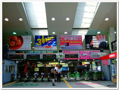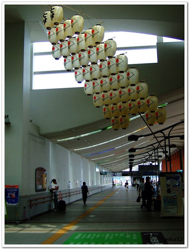 秋田車站如同其它車站,剪票口外裝飾著秋田最著名祭典「竿燈まつり」的竿燈,