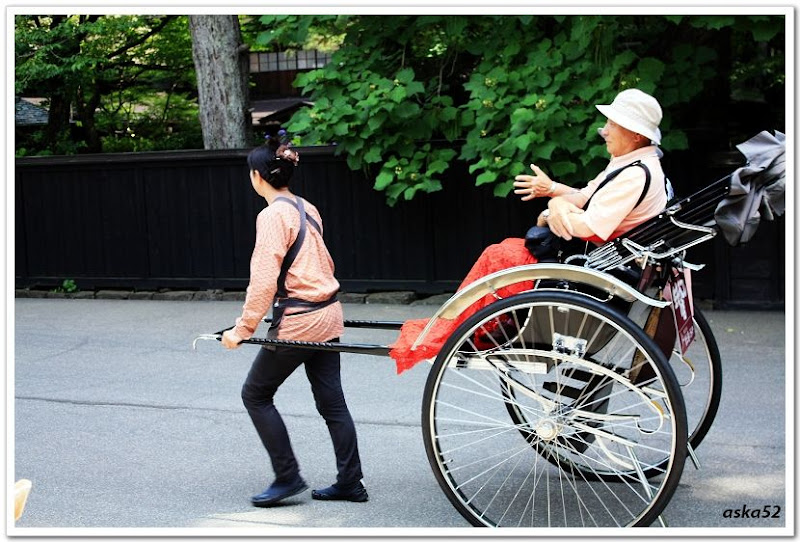 以往人力車這種吃重的工作都是男生在做,角館這裡有女生車伕,第一次見。