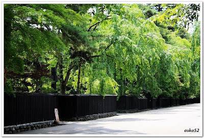 整排約一個人高的黑色木製圍牆,圍牆內到處都是高聳的樹木,就是武家屋敷所呈現的基本調性。