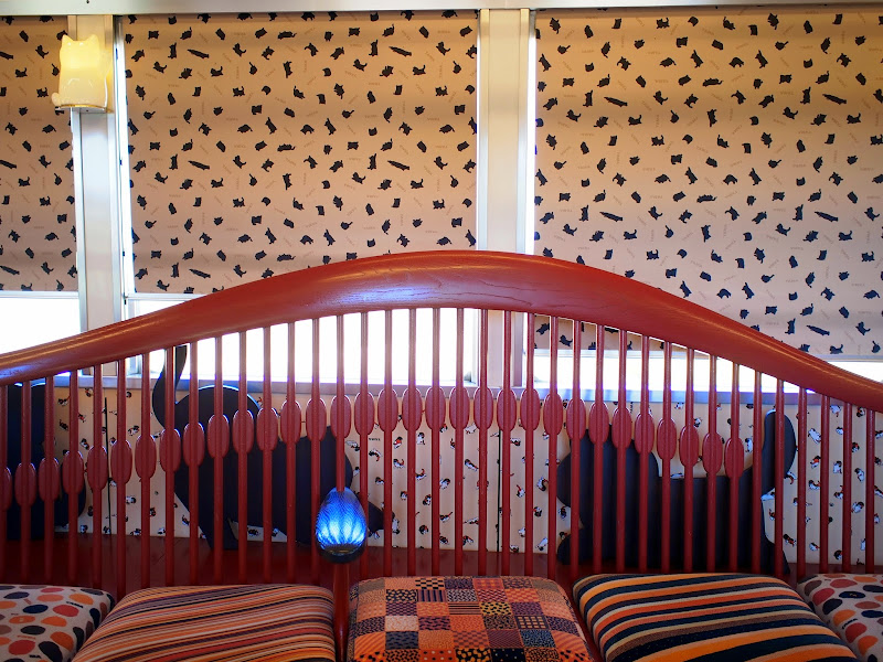 車站外觀也很特別,走遠一點來看就可以看出是一張貓的臉,也完全是依小玉量身打造,許多細節都有隱藏有貓咪的身影,例如橫樑上就有貓的影子,掛勾也是貓的形狀,非常有巧思,只要仔細找就會發現設計者的玩心。