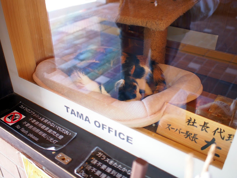 由於小玉年事已高,已經14歲了,無法再像以前一樣讓牠自由在車站內活動值勤,因此特地做了一個空間做為站長室,讓旅客依然可以透過玻璃觀賞這隻傳奇貓站長。當天小玉正睡得香甜,大家可要放低音量,且拍照時一定要關閉閃光燈,別打擾到老奶奶了。